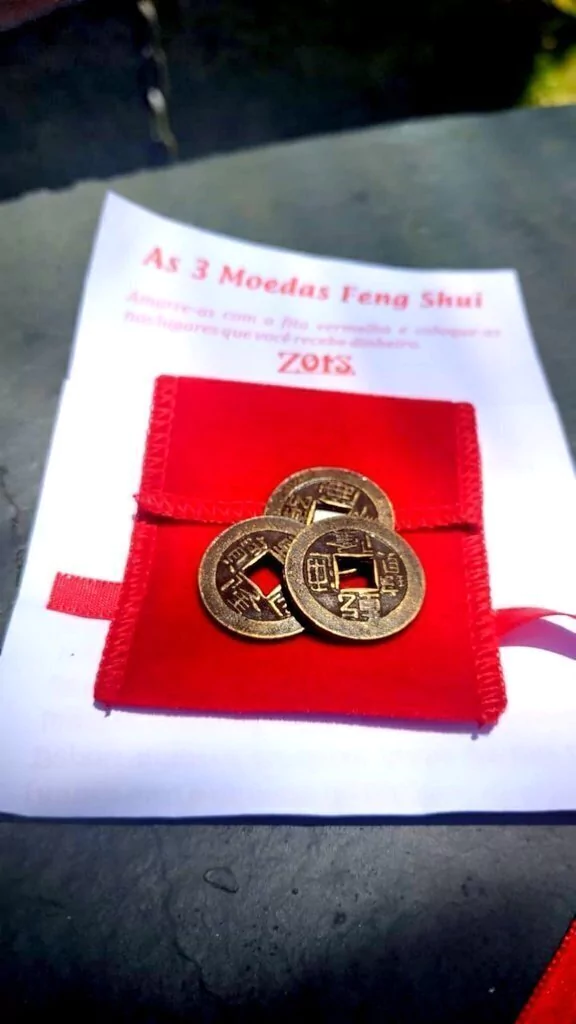 Essas moedas quando usadas presas com uma fita vermelha ativam as energias yang e têm o significado feng shui de lhe beneficiar financeiramente.